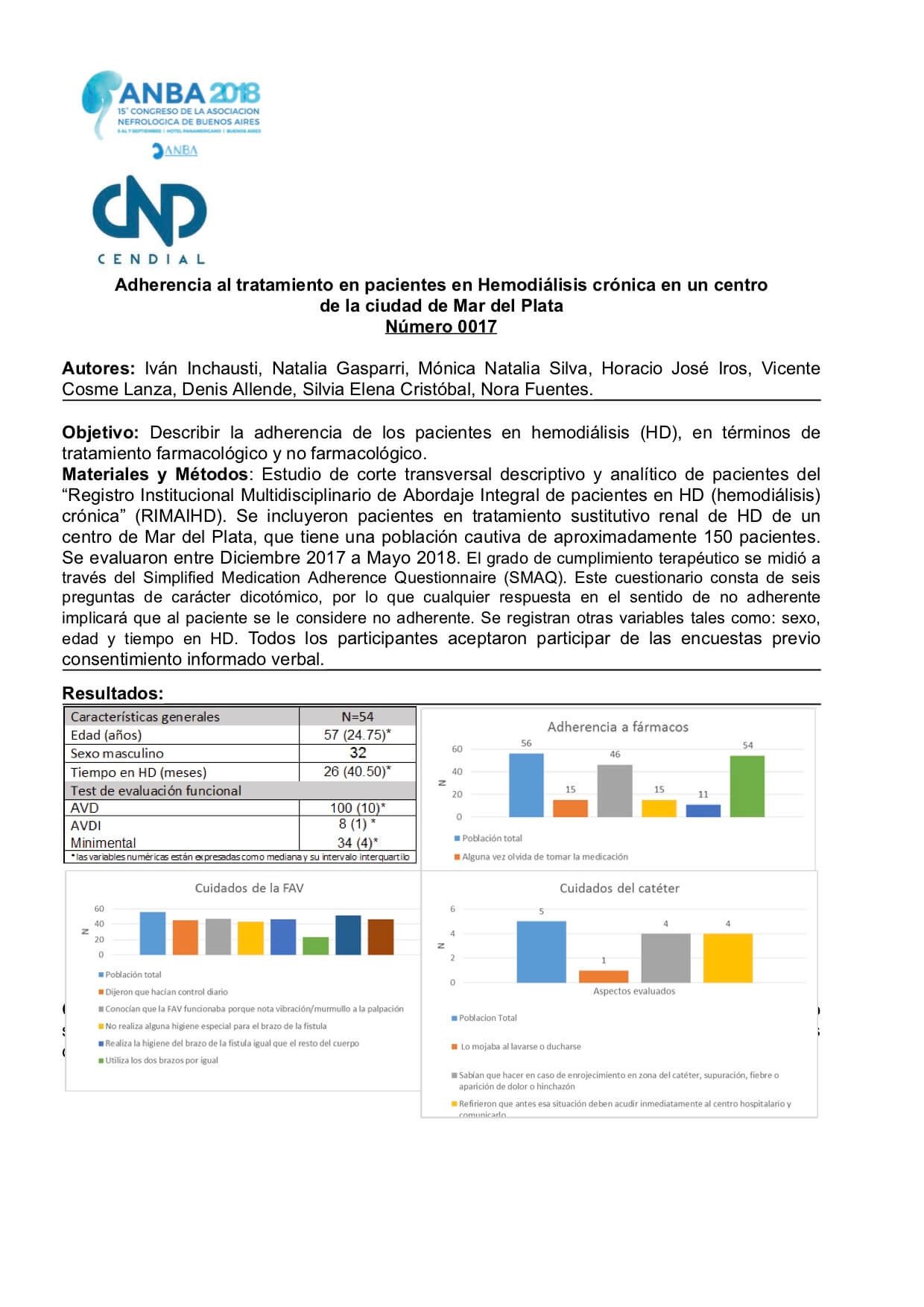 Describir la adherencia de los pacientes en hemodiálisis (HD), en términos de tratamiento farmacológico y no farmacológico.